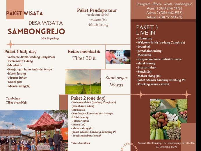Desa Sambongrejo merupakan salah satu desa wisata yang berada di Kecamatan Sambong Kabupaten Blora. Salah satu daya tarik utama yang ada di desa ini adalah kampung literasi sedulur SIKEP atau lebih dikenal sebagai kampung Samin yang tepat nya berada di dukuh blimbing. Disini wisatawan akan diajak untuk mengenal, berdialog, berinteraksi, dengan warga Samin, belajar dari sifat kejujuran dan Kesederhanaan dari masyarakat samin. Selain itu wisatawan juga akan disuguhi disuguhi kesenian Warga Samin berupa Gejog Lesung dan Drumblek, Kuliner asli Warga Samin, dan masih banyak potensi wisata lainnya, seperti belajar membatik, menikmati keindahan persawahan, kunjungan ke tempat bersejarah, dan juga kunjungan ke peternakan kambing etawa.