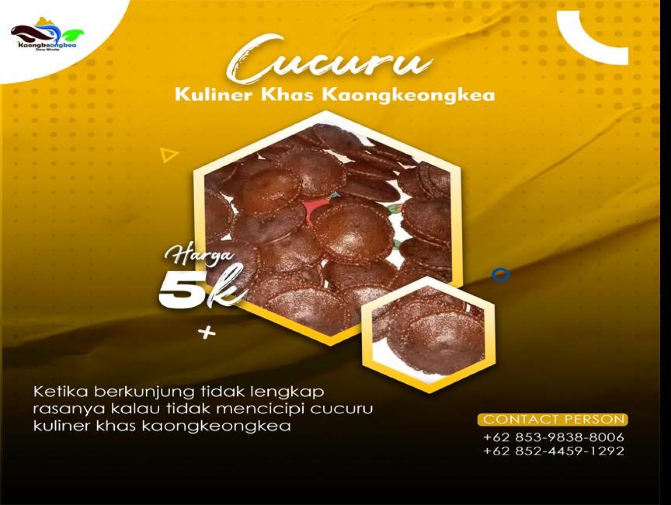 Kue Cucuru atau biasa dikenal dengan kue Cucur, merupak aneka kuliner yang telah diwarskan turun temurun oleh masyarakat Desa Kaongkeongkea, Kuliner ini terbuat dri tepung beras yang dicampur dengan gula merah.