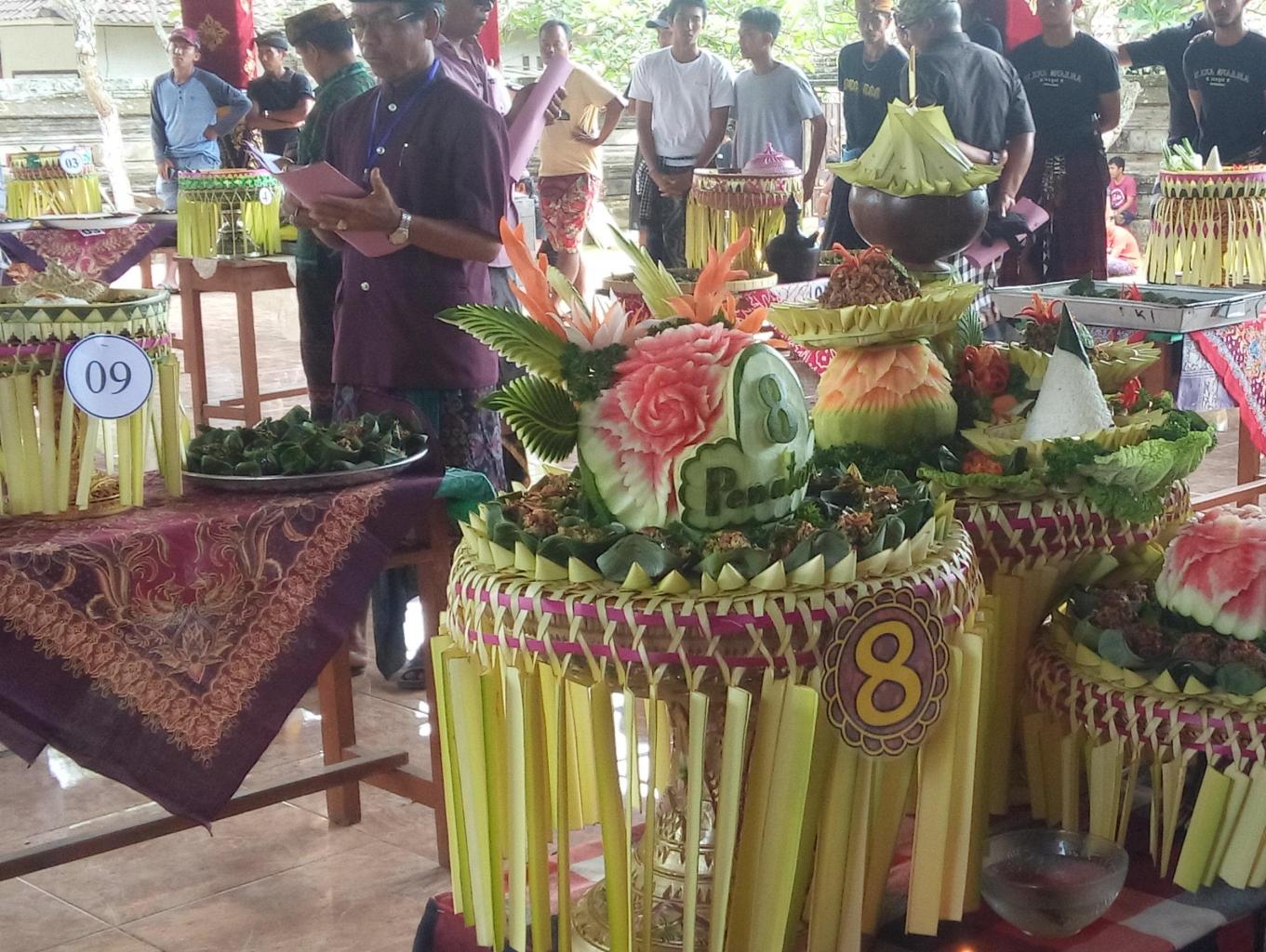 Buah yang umum digunakan biasanya dari Semangka, Pepaya, Melon, Apel dan Labu. Mengukir buah hampir sama dengan mengukir kayu, tapi lebih membutuhkan ketelitian karena buah bersifat rapuh dan lembek. Butuh bakat dan keterampilan khusus hingga mahir menggunakan pisau. Di Batuan seni ini cukup jarang di dilakukan. Selain senimannya tidak banyak, juga kesempatan untuk membuatnya harus dibarengi kegiatan - kegiatan tertentu seperti misalnya festival kuliner, demo wisata, atau memang diselenggarakannya lomba mengukir buah.