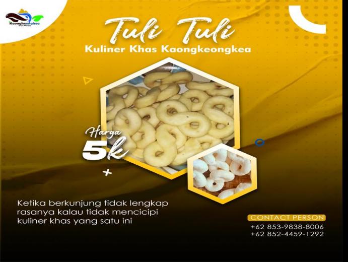 Kalo-Kalo merupakan cemilan khas Desa Kaongkeongkea yang terbuat dari tepung beras yang diolah secara tradsional dan higienis yang siap memanjakan lidah pengunjung/wisatawan.
