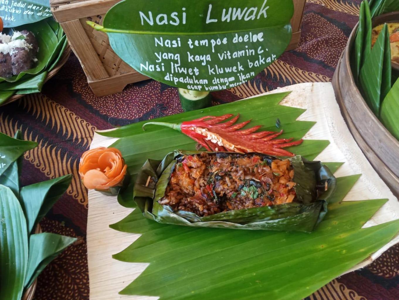 Nasi liwet kluwek yang dipadukan dengan ikan Blencing bumbu merah kemangi dan dibakar menggugah selera untuk memanjakan indra perasa.Nasi tempo dulu yang kaya vitamin C dapat mencegah radang sendi . Pantas saja nenek moyang kita orangnya kuat- kuat, dapat berjalan kaki puluhan kilometer. Kluwek juga bisa menormalkan kadar kolesterol. Makan Nasi Luwak badan sehat kuat semangat hati bahagia.