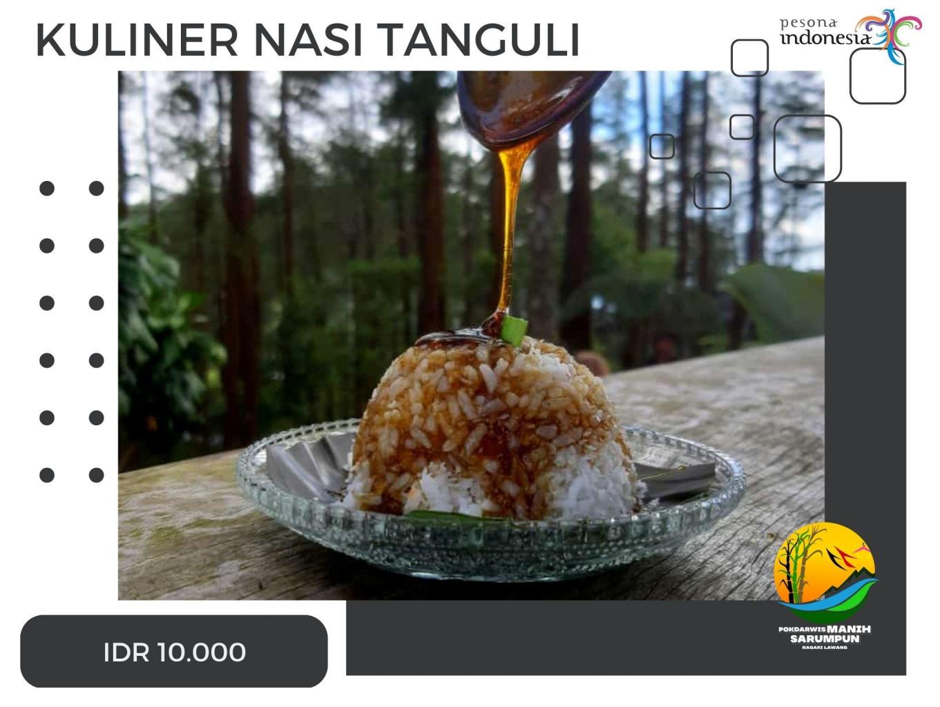 Makanan ini dahulunya termasuk makanan pokok khas nagari lawang, karena Nasi Tanguli ini sangat nikmat di santap karena adanya perpaduan Nasi yg di campur dengan Tanguli atau (air tebu yg sudah di masak) di tambah dengan parutan kelapa dan bumbu traditional lainya, adanya perpaduan manis dan gurihnya kelapa menjadikan kuliner satu ini khasnya Nagari lawang.!