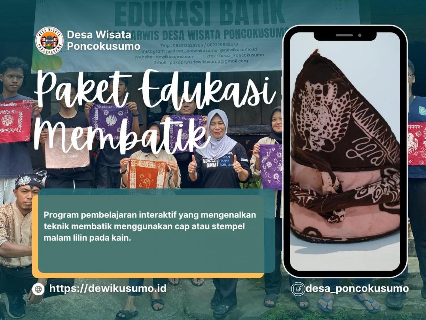 Pengenalan filosofi batik lokal Penjelasan tentang motif khas Poncokusumo dan makna budaya di baliknya, seperti motif bunga wijaya kusuma yang mencerminkan kearifan lokal.