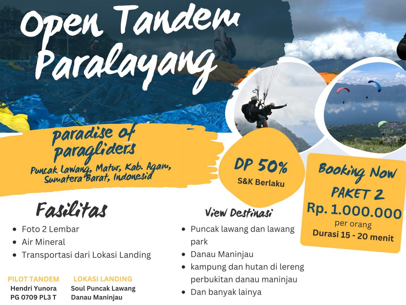 Nah ini mimin mau kasih info kalau @pesona_lawang Open Tandem Paralayang loh, ada 3 paket yang mimin sediakan.