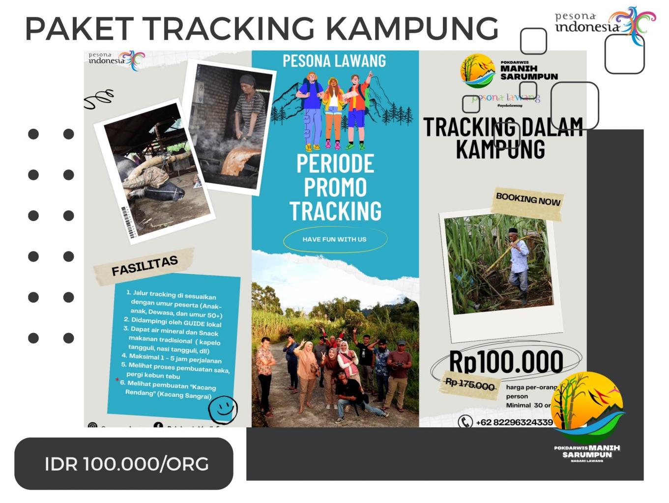 Pesona Lawang ada paket wisata baru loh  “Tracking Dalam Kampung Wisata Lawang” sobat bisa mencobakan atraksi tracking kampung yang di balut perkebunan tebu terbesar di sumbar, pengilangan tebu sampai dengan proses jadinya gula “SAKA” di pandu oleh Guide lokal berpengalaman dan menikmati kuliner tradisional khas Lawang seperti :