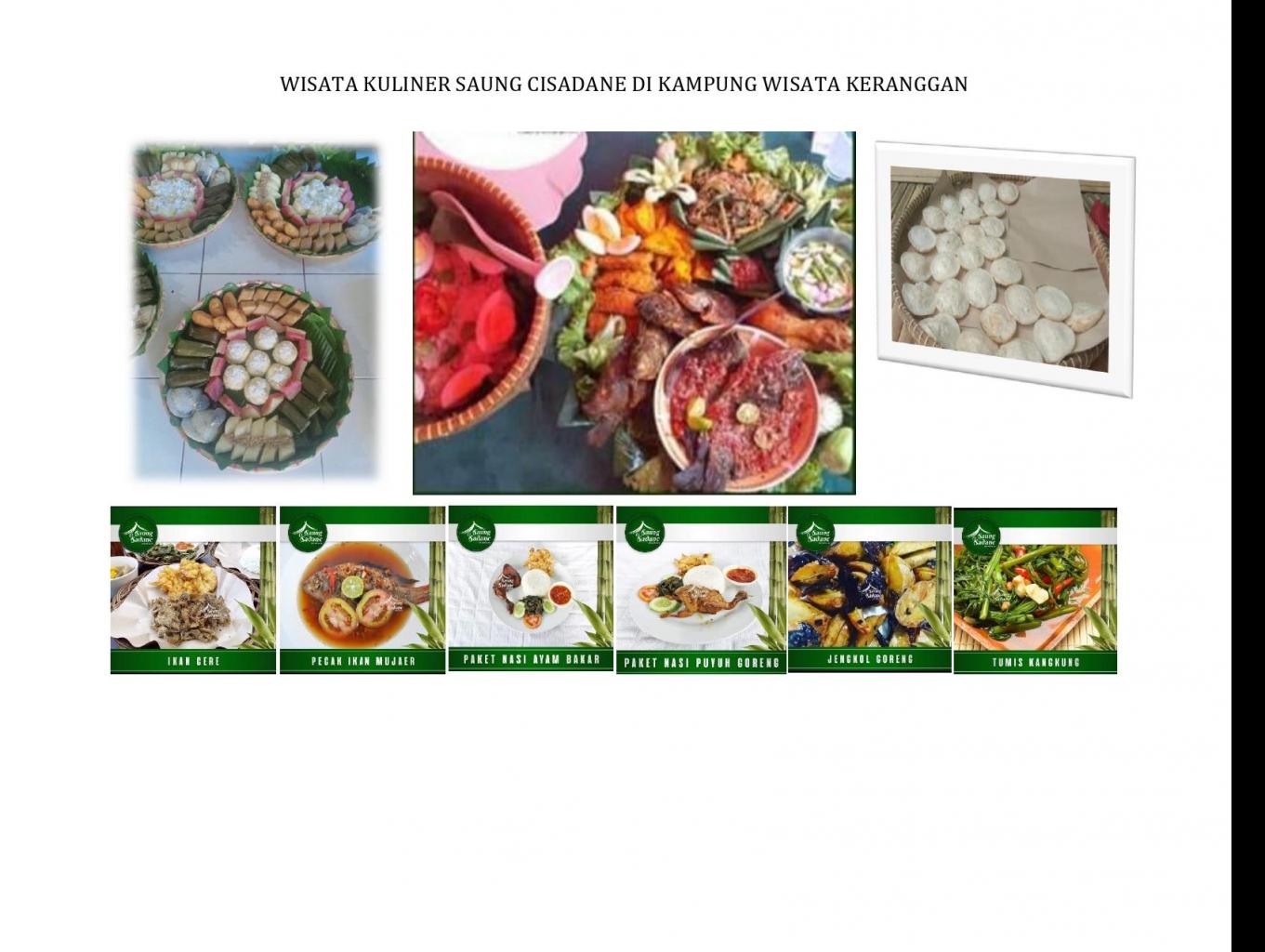 Wisata kuliner khas Keranggan adalah “Ikan CERE” yang diambil sehari-harinya dari sungai Cisadane dibuat menu goreng kering Cere, dan pada musim kemarau banyak dipancing ikan “BAUNG” dibuat menu Pindang. Ada lagi yang khasnya Keranggan yakni “PECAK Ikan”.
